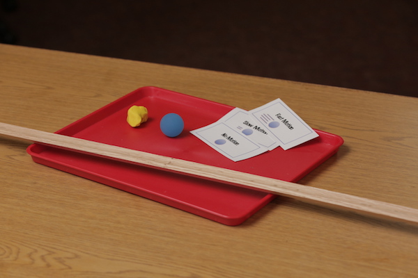Give each pair of students a short piece of track, some modeling clay to level the track, and one ball, and ask them to explore rolling the ball along the level track, emphasizing that their pushes should be gentle enough to keep the ball on the track.